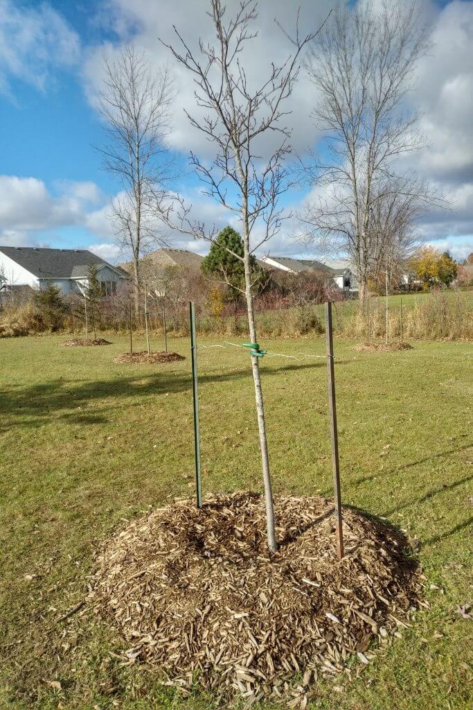 Since day one, care and feeding of the serviceberries have been skillfully provided by the father and son team of Dave and Adam Bryant. Their frequent watering, and mulching to protect from harsh weather conditions, are helping the delicate saplings to grow and thrive.