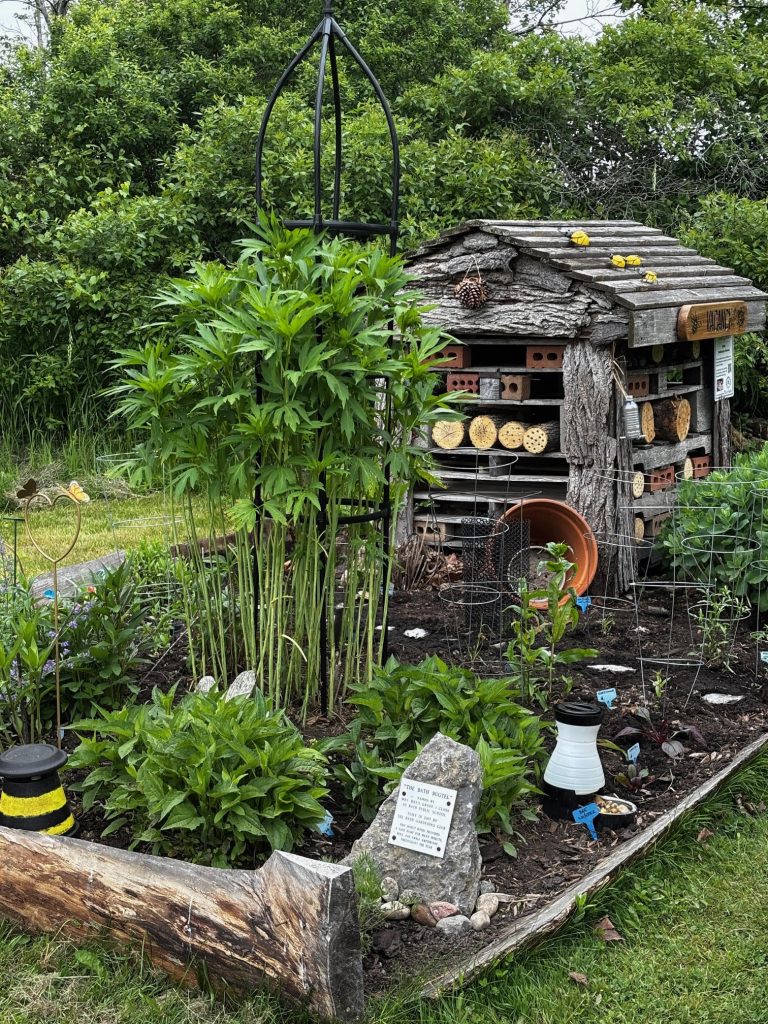 Using a generous donation from LaFarge Canada, our club created the Memorial Grove in 2023. It began with the purchase of 4 Serviceberry saplings, which are valuable for pollinators because they bloom early in spring, providing nectar and pollen for bees, butterflies, and other insects when food sources are scarce. They’re also perfectly situated for pollinators – like orchard bees – to visit them after emerging from the Bugtel shelters in spring.