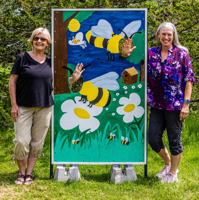 In 2023 using a generous donation from Lafarge Canada, club members led by Janice Firth expanded the Pollinator Garden, creating a veritable bullseye of colour, for attracting and sustaining even more local pollinators. Mike Whalen provided lumber for the sides of our raised pollinator garden. An illustration of all the flowering plants growing there was captured in a lovely pallet art collage painted by the late Bonnie Fredenburgh.