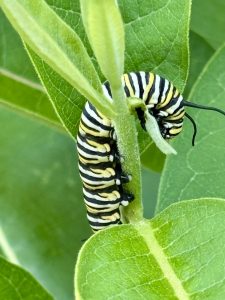 - In 10-14 days, when the caterpillars are fully grown, they’ll crawl away from their milkweed hosts to find a safe, quiet spot to pupate, maybe under the BugTel’s roof? If you’re lucky enough to find one, please do not disturb it!