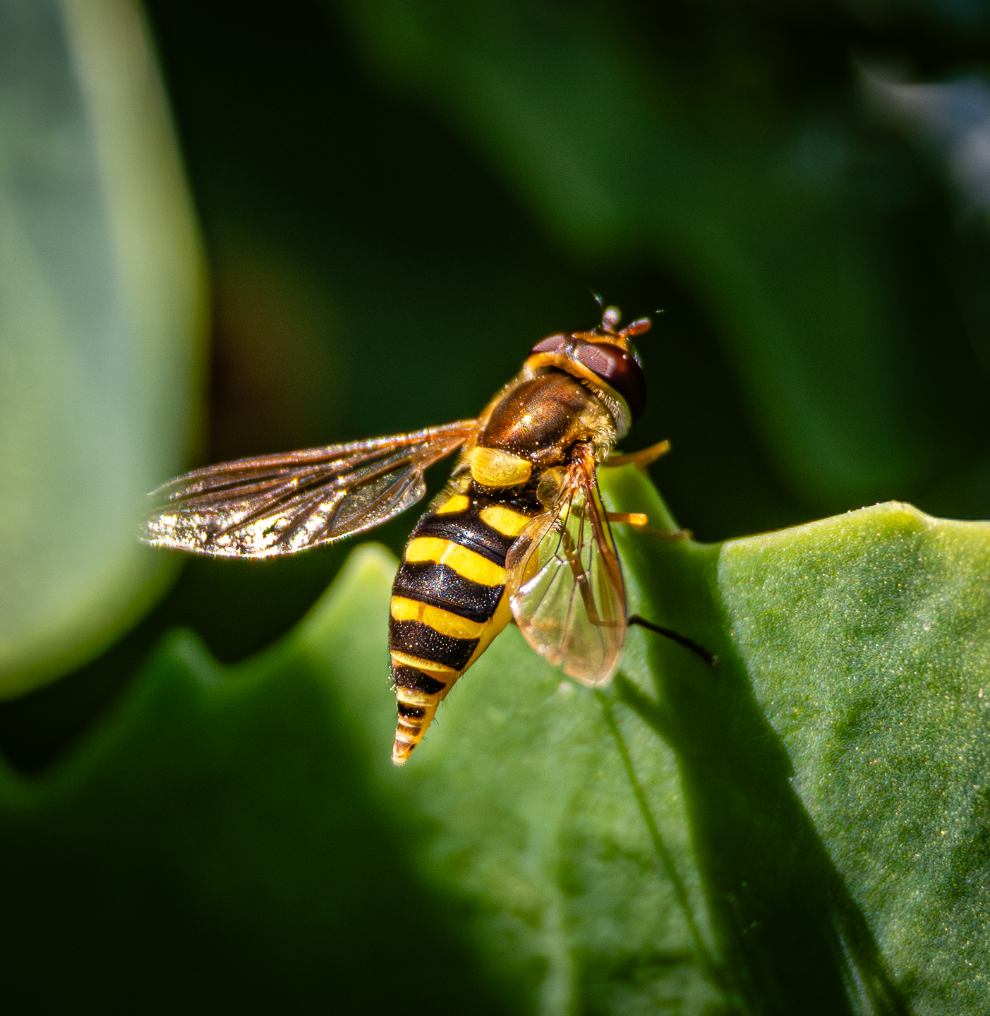 - Hoverflies look like bees but are smaller, have only one set of wings, and compound eyes like other fly species. They are excellent flyers, able to hover and even fly backwards. Their hairy bodies collect pollen, which then gets transferred to other flowers when they visit them.